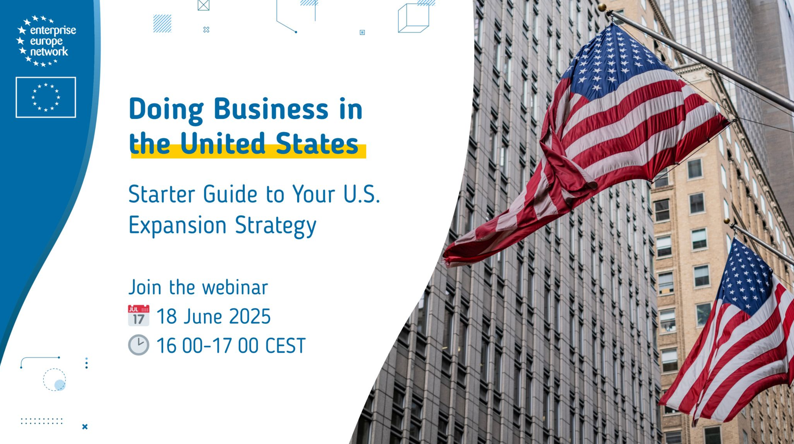 Evropske male i srednje kompanije, startapi i svi zainteresovani za širenje poslovanja na američko tržište imaće priliku da prisustvuju besplatnom vebinaru pod nazivom „Doing business in the United States: starter guide to your U.S. expansion strategy“, koji će biti održan 18. juna 2025. godine od 16:00 do 17:00 časova po srednjeevropskom vremenu.
